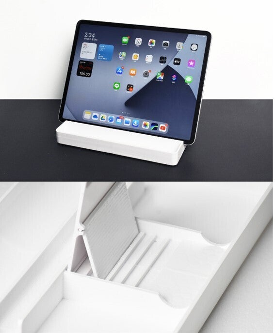 スマホスタンド、タブレットスタンドにもなる。収納のついでに、