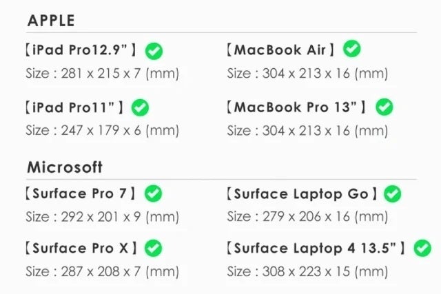 PCやタブレットはご自身の品でサイズをご確認ください。※下記は参考です。