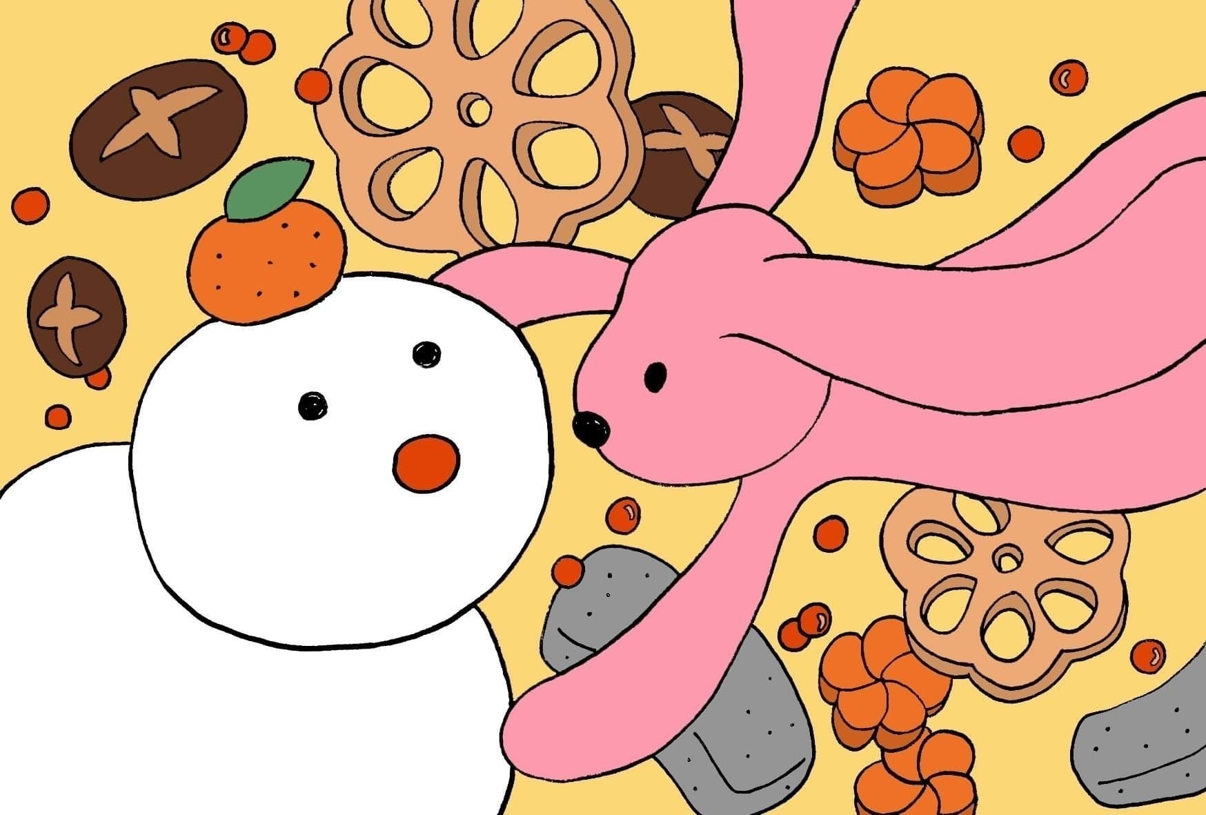 どんな年になるか不安な気持ちでお正月を迎える雪だるま。