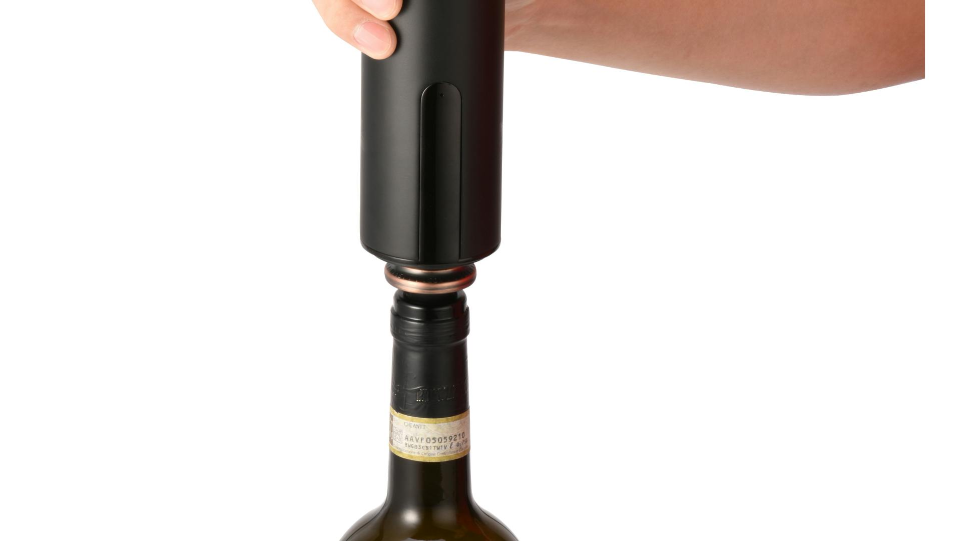 電動オープナーは自動設計を採用しており、ボタンを押す必要はありません。オープナーを少し押し下げます。スパイラルが自動的に時計回りに回転してコルクに入り、徐々にコルクを抜き取ります。 6~8秒でボトルからコルクが完全に抜かれると、ワインオープナーは自動的に停止します。数秒後、スパイラルは自動的に反対方向に回転し5~7秒後コルクを排出します。