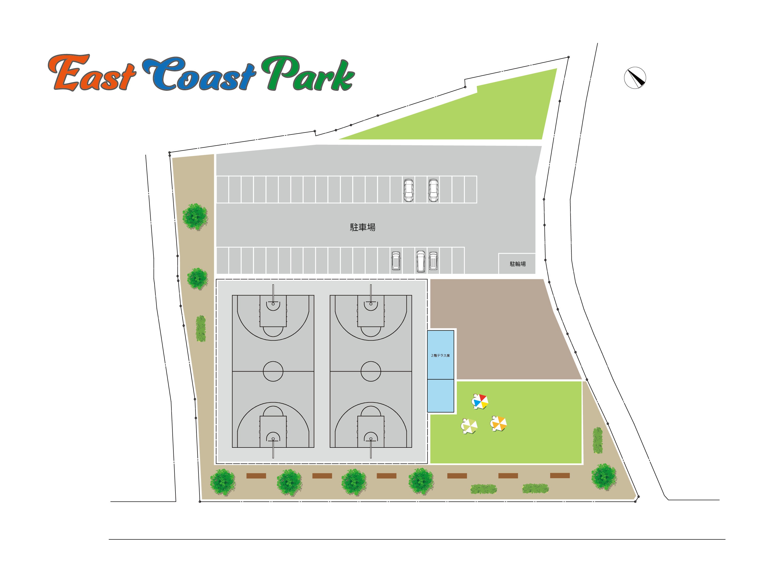 この施設には屋外バスケットコートが2コートと駐車場