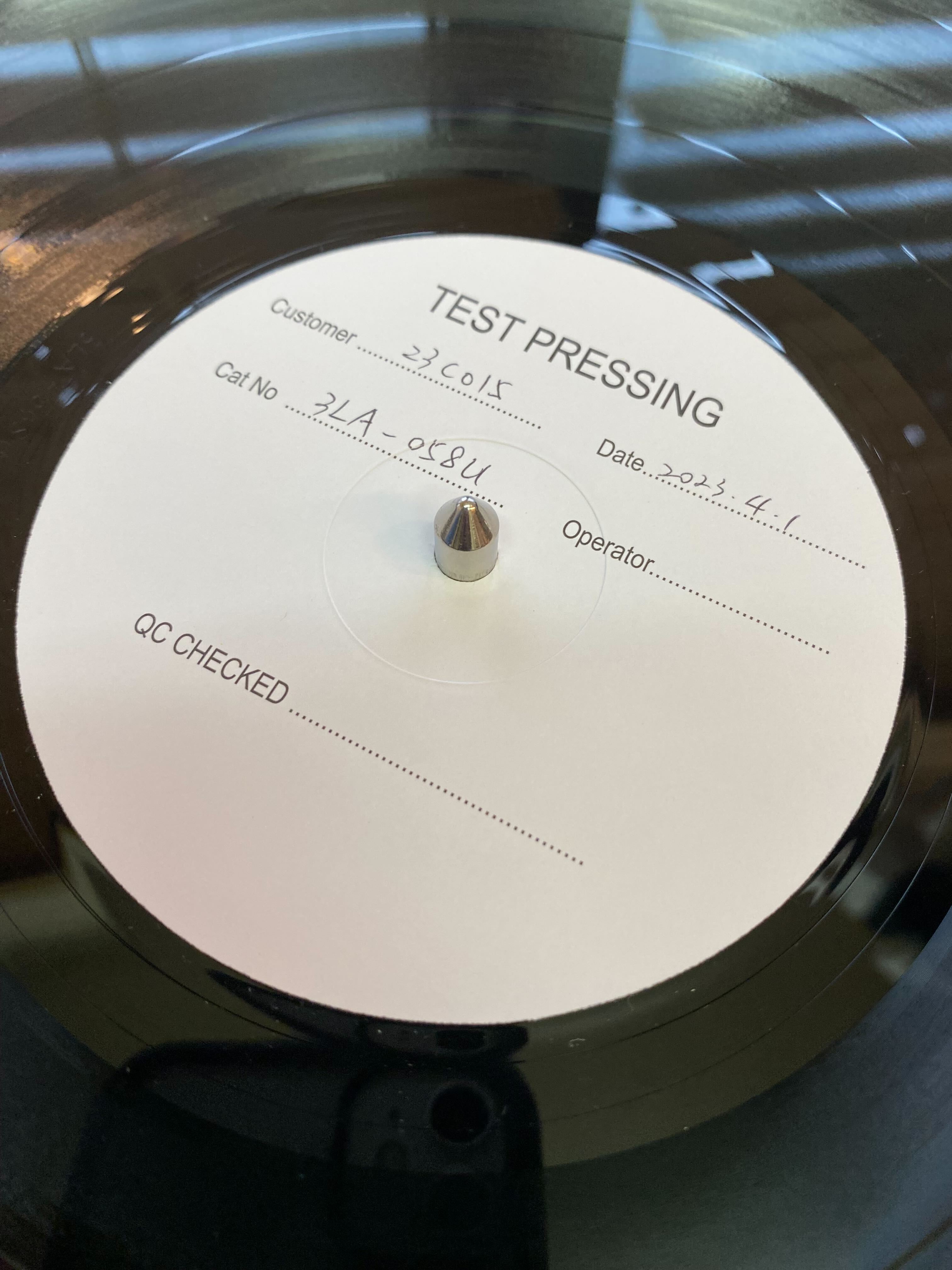 ついにテストプレス盤が届きました!レコード制作の工程を簡単に説明すると、レコードの盤をプレスする前に「テストプレス盤」というものを制作します。レコーディングスタジオのエンジニアがマスターと呼ばれる音源データを作るのですが、それがデータのままレコード盤に収録されるのではなく、工場のエンジニアの人が細か〜〜い作業でいろいろな調整をしてカッティングという作業を行います。このカッティングによってマスターの音源データと微妙に音質が変わったりするので、テストプレス盤というのを作ってみて、音質だったり曲間だったりが問題ないかを確認する作業が発生するのです。店舗のほうで聴いてみたんですが、かなり良い感じでした。バンドのほうでも未公開曲を少しだけtwitterに流出させていただので、ちょろっとだけ聞くことができます。https://twitter.com/band_spoilman/status/1646840117443821568問題がなければプレス工場側へゴーサインを出します。ここから先、もし何か間違いがあっても引き返して修正することはできません。いよいよプレス工程と進むことになります。