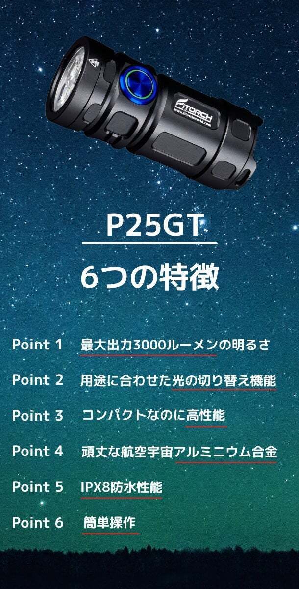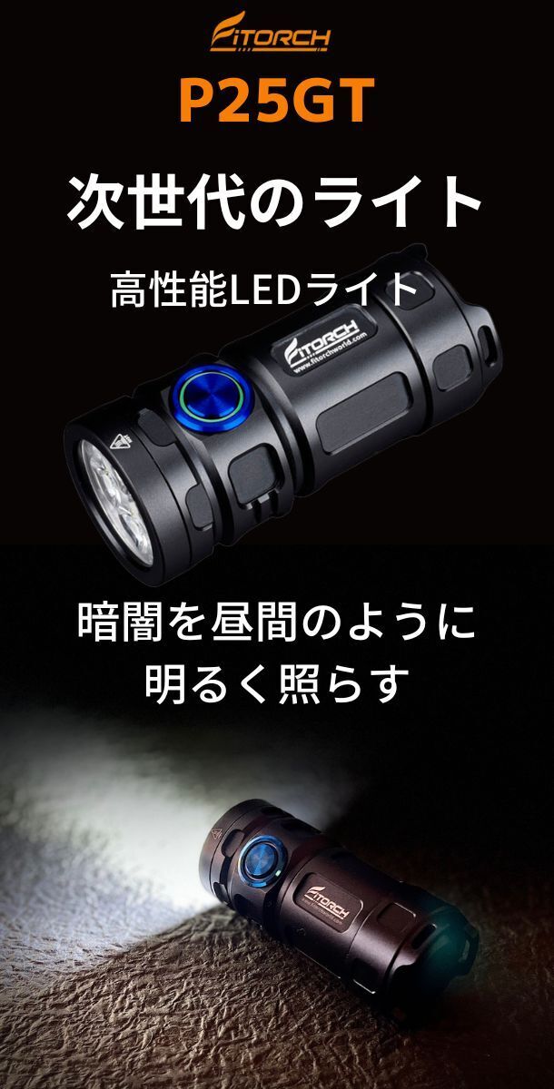 FITORCH(Fine & Fitの意味)では、お客様に「現実的、革新的、心のこもったサービス」を提供することを使命としており、今回、日本の皆様に当社最新作の「P25GT」をご紹介出来ることを楽しみにしております。「P25GT」は単なる懐中電灯ではなく、何年にも渡りあなたの生活をサポートする頼りになる相棒になることを心から願ってます。