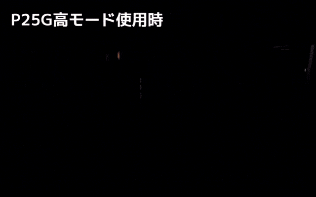 P25GTは一般的な高ルーメンライトと違い、照射範囲が広いため近くから遠くまで広角に明るく照らすことが出来ます。