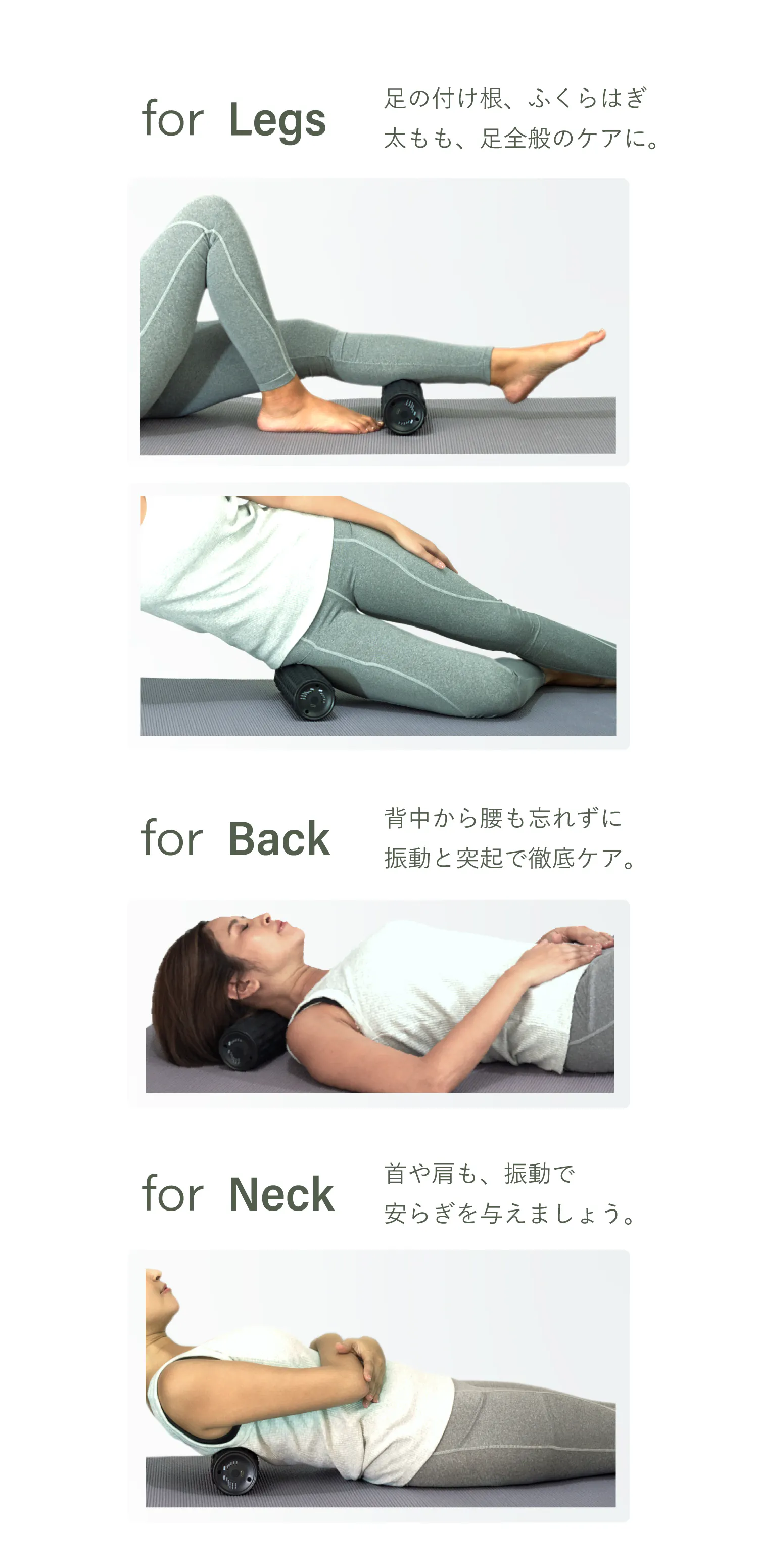 心身双方の理由があって疲労を感じているのかもしれませんが、そのような状況下でストレスや疲労を癒すための貢献ができればと思い、1台で全身のケアが充分にできる商品の制作に着手いたしました。