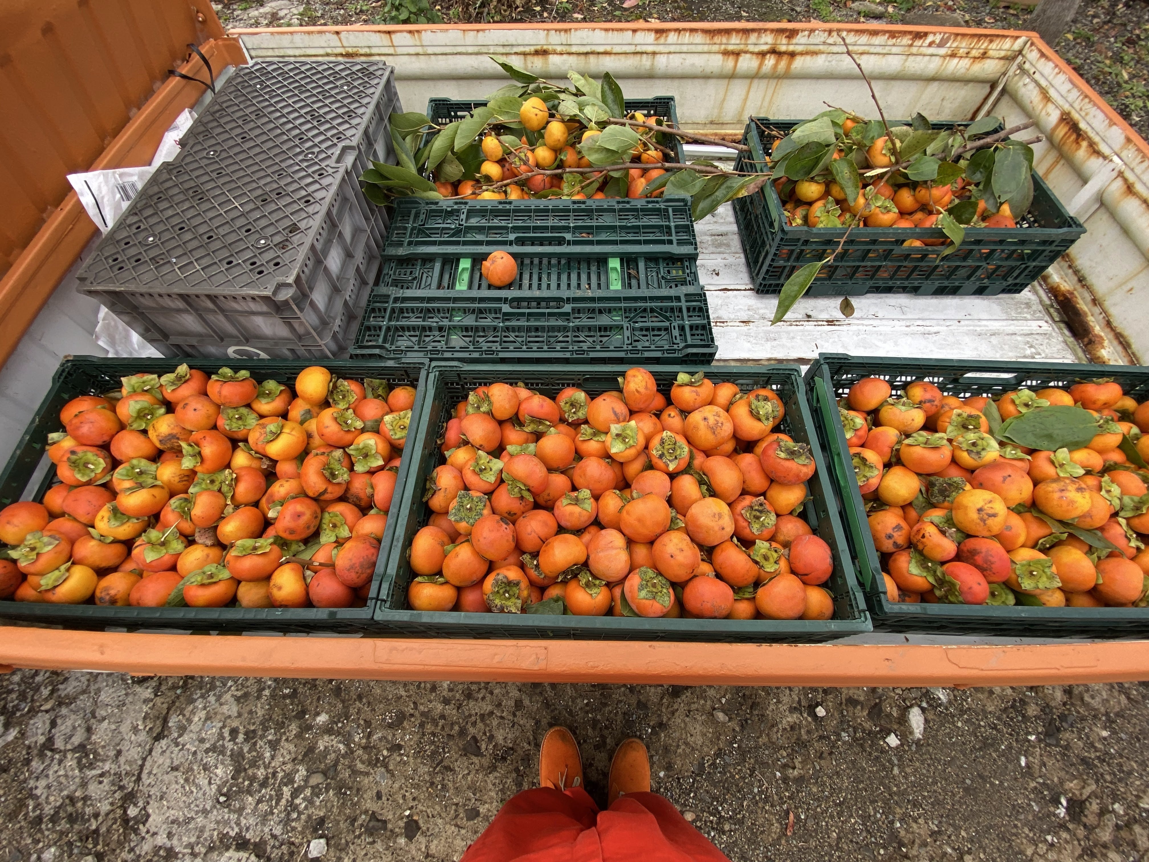 収穫している柿はぼくが栽培したものではなく自然栽培。つまり、放置されている柿なので栽培期間中は農薬や化学肥料などは不使用。