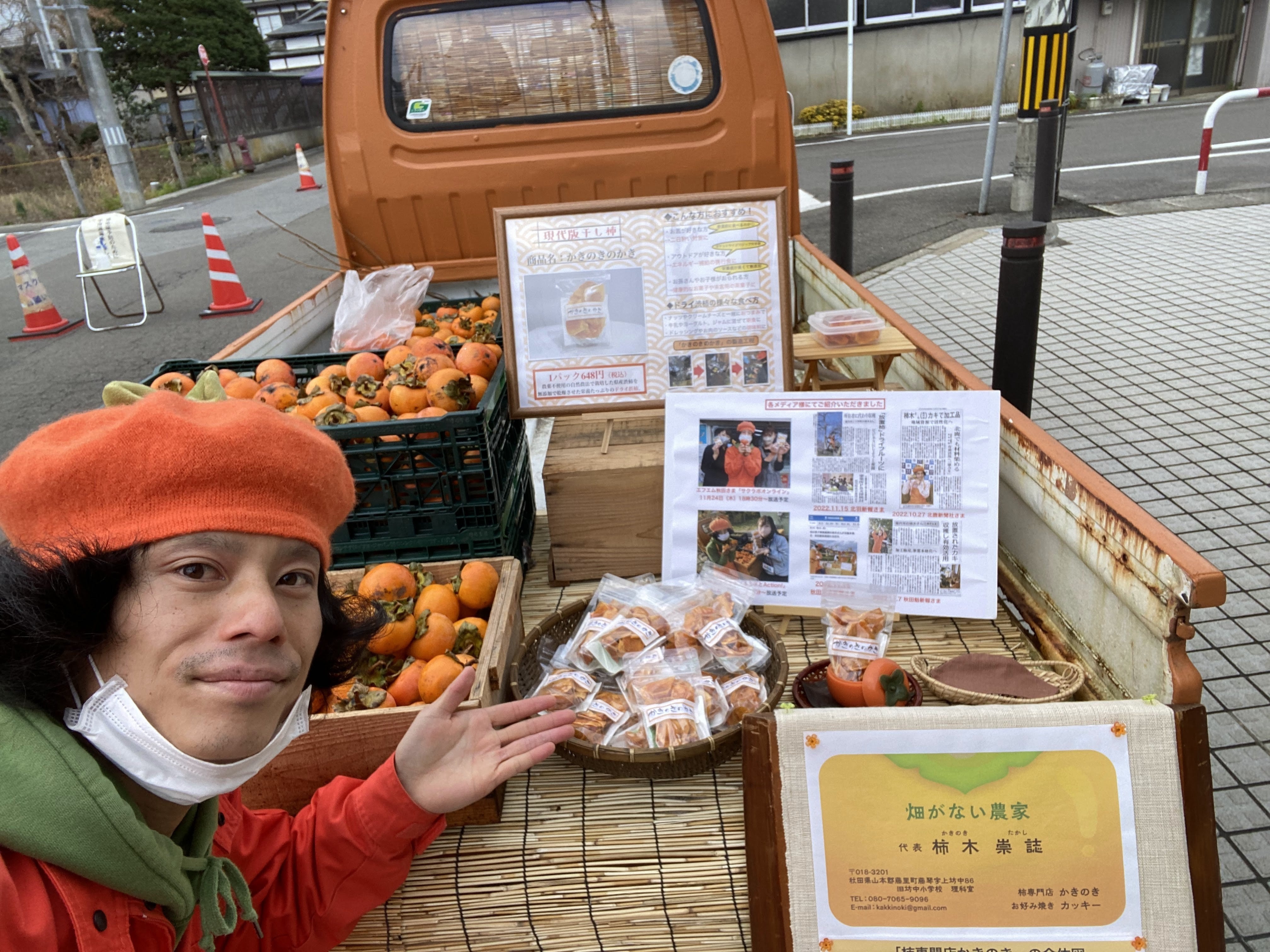 ぼく自身「畑がない農家」と名乗って活動しているのもそのためで、柿は安心安全の秋田県産。