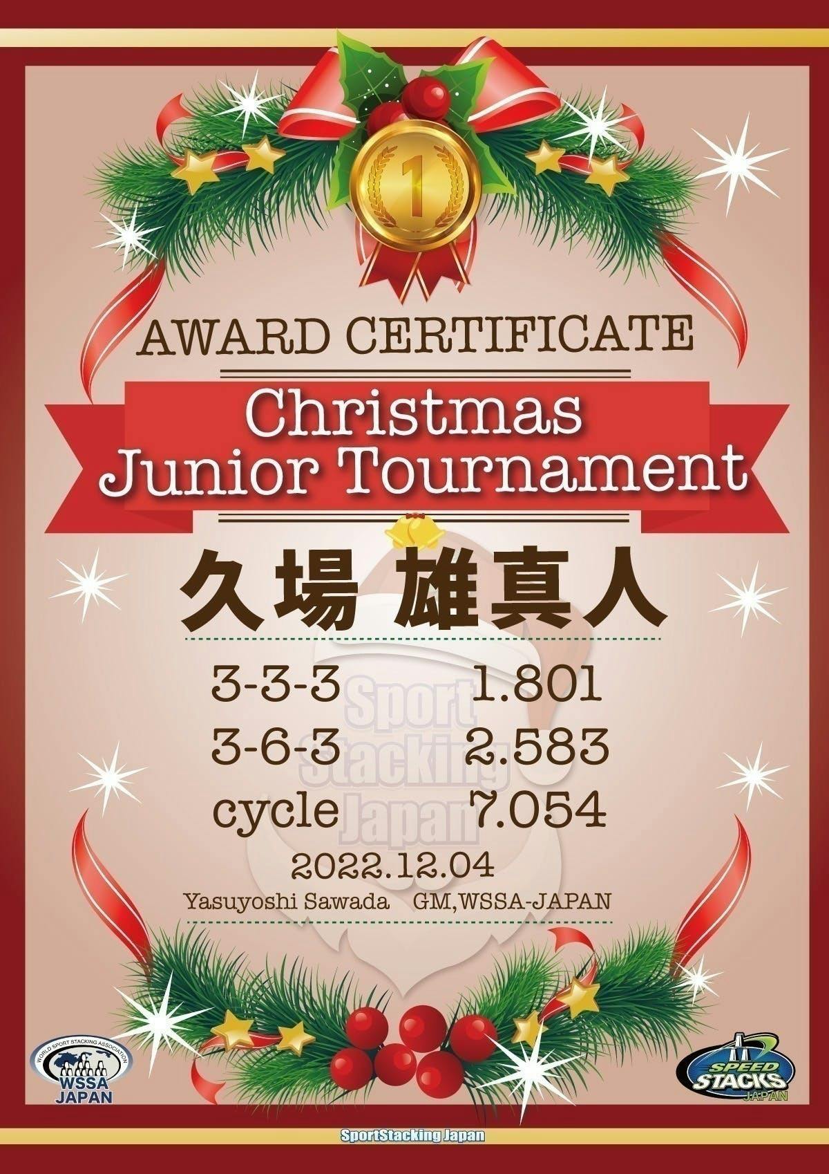 はじめまして、久場雄真人です。中学1年です。コロナ禍真っ最中の小学5年の夏に出会い、スポーツスタッキング歴は3年目になります。