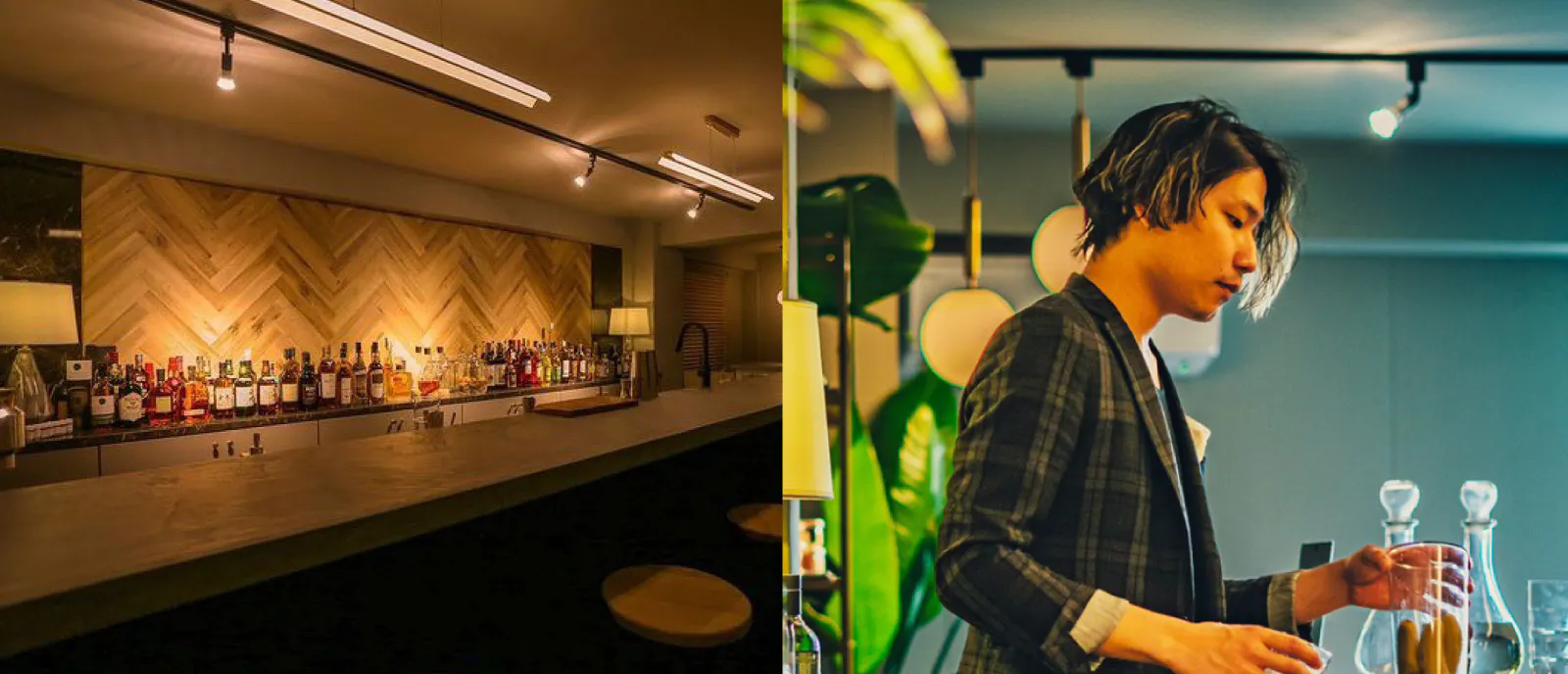 (左:小田原のバー調酒堂内観、右:調酒堂オーナー齋藤大輝氏)