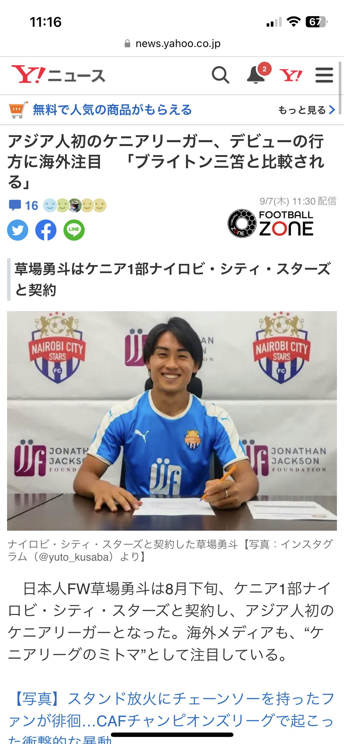しかし、ケニアでのニュースが日本まで届き、Yahooニュース、LINEニュース、そしてFootball Zoneというサッカーメディアに取り上げていただきました。
