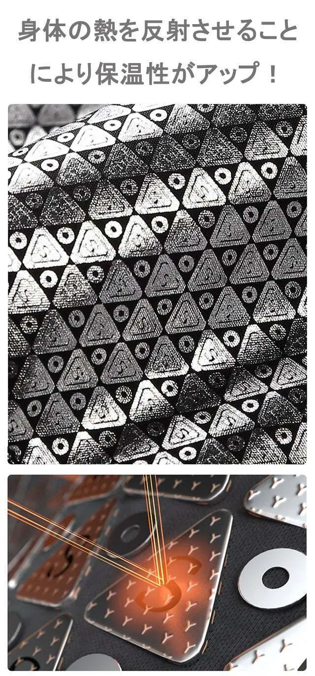 保温性を保つために、内側の一部にシルバーハニカム・リフレクティブ(SILVER-HONEYCOMB REFLECTIVE)」素材を使用し、人の体から反射する赤外線熱を反射して、熱をそのまま保存してくれます。