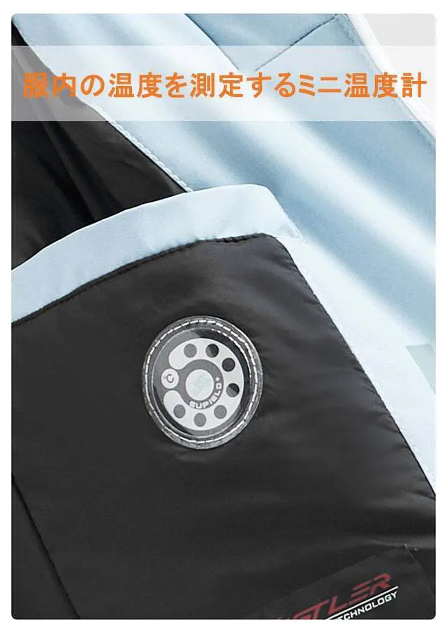 服の裏には簡単な温度計がセットされており、精度の高い測定はできませんが内部の温度変化が分かります。