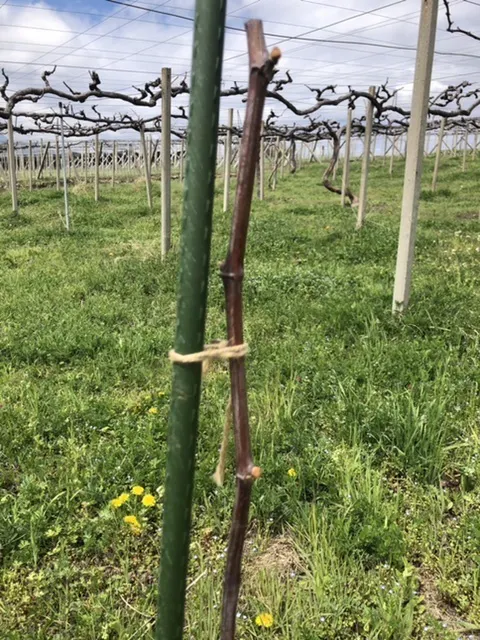 先日植え付けしたマスカット・ベリーaの苗木から芽が出て来そうです。