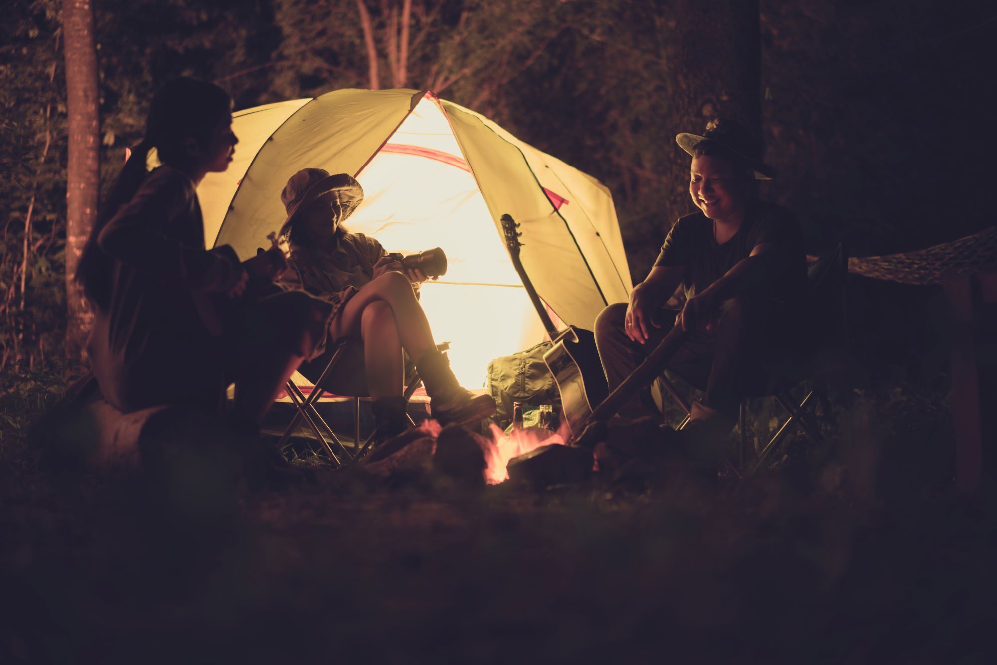 キャンプを楽しむお父さん、お母さん。でも退屈している子供。いますよね?