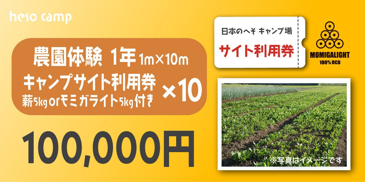 ・100,000円 農園体験 + 利用券10枚(薪5kg or モミガライト5kg付き)