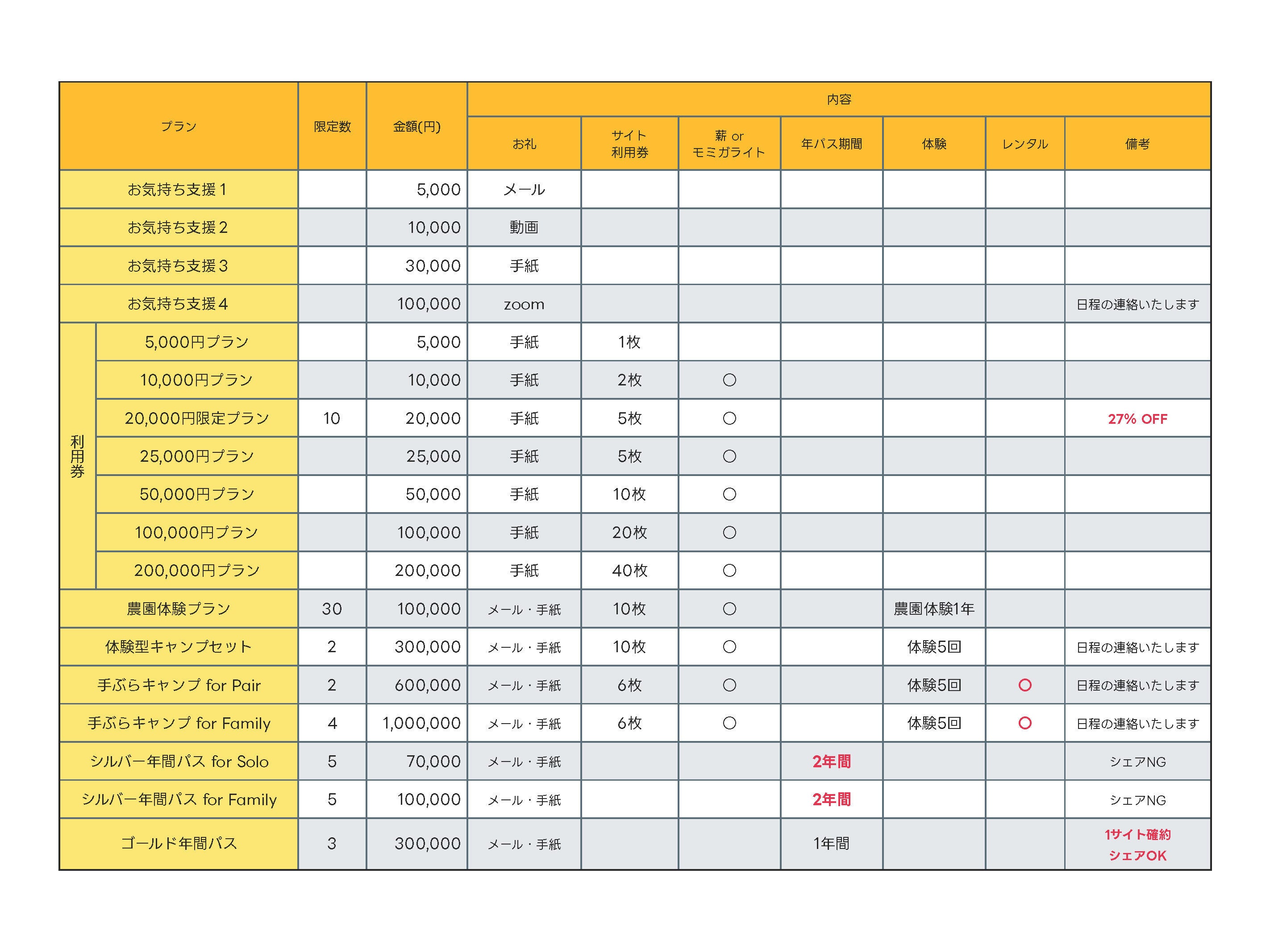 ”もの”は、御礼のメール、キャンプサイト利用券、年間パス等。