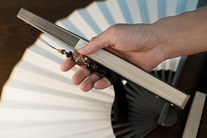伝統的な扇子は竹と木を使用しており、扇骨の模様は大同小異。 作り手が扇面に絵付けで違いや表情をつけていきます。
