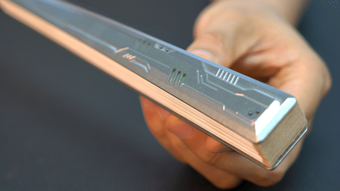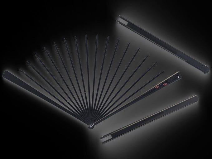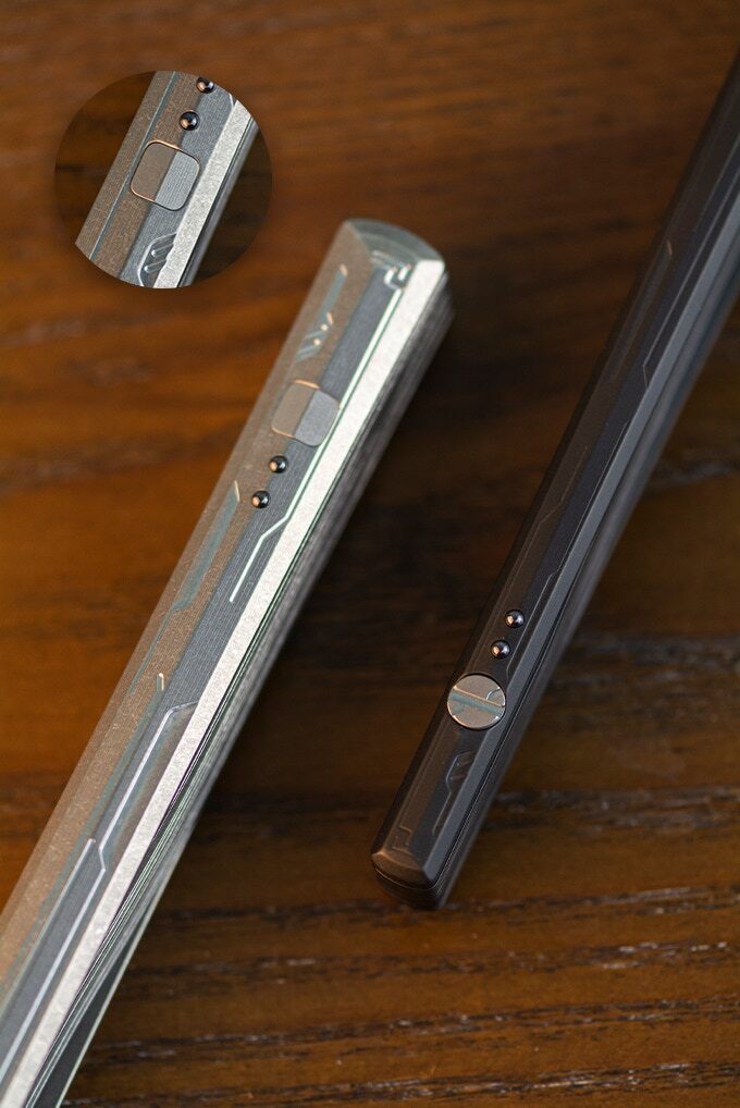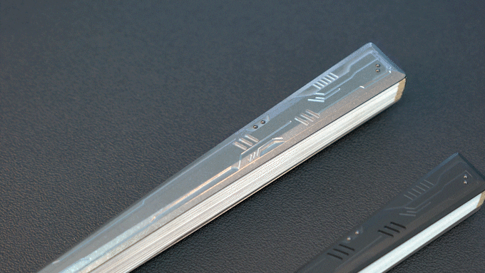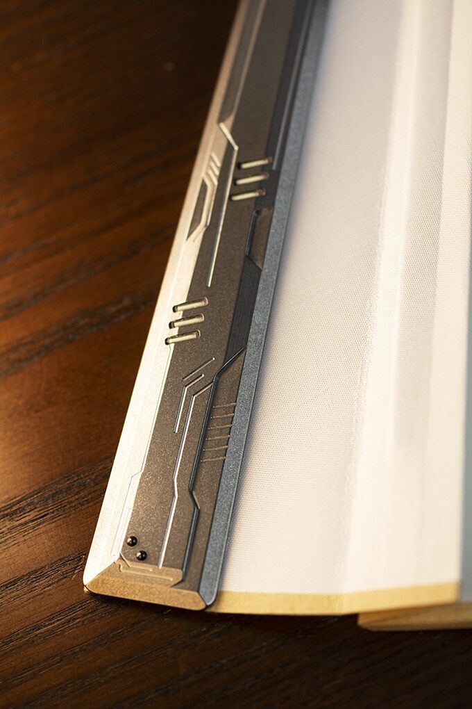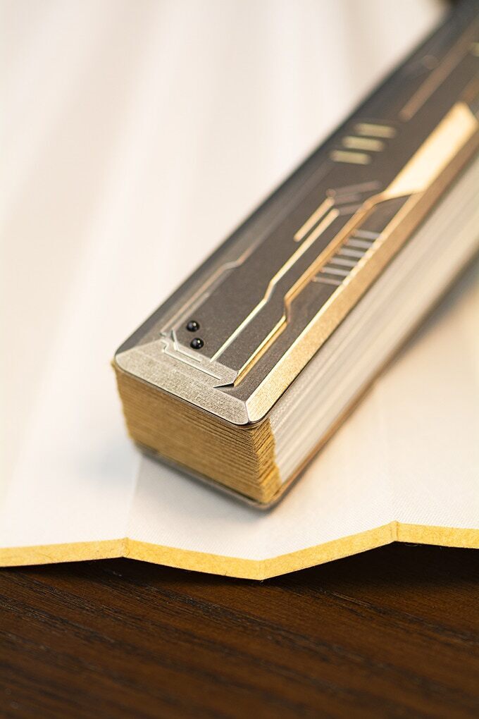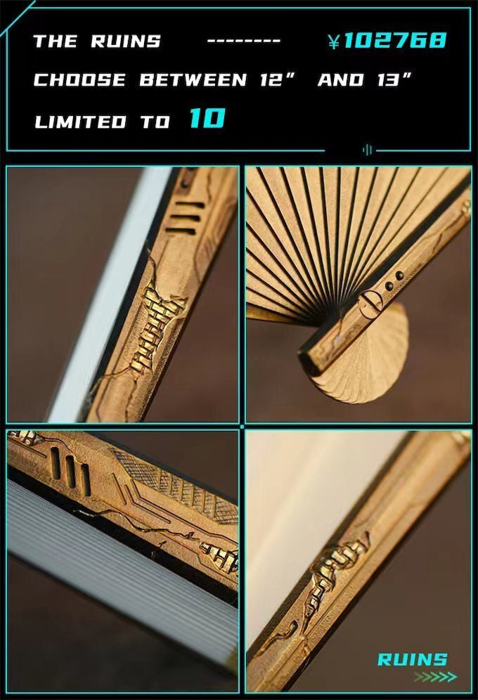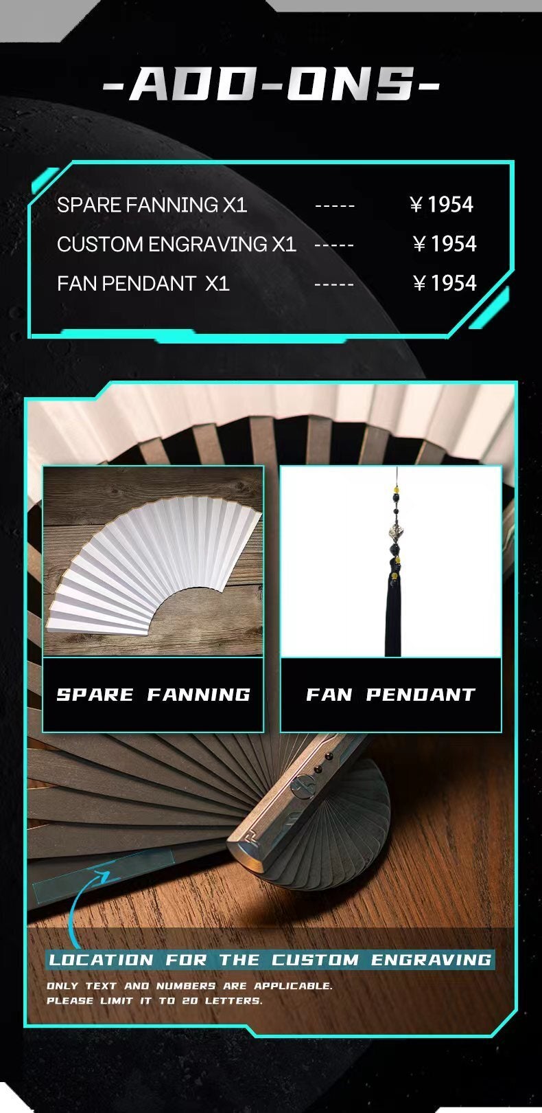 起源はまったく異なるスタイルで設計されています.親骨にCNC機械加工されたチップ回路パターンが仕上げでおりました、これまでに見たどの扇子とも一線を画しています.