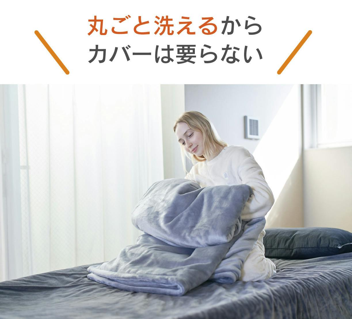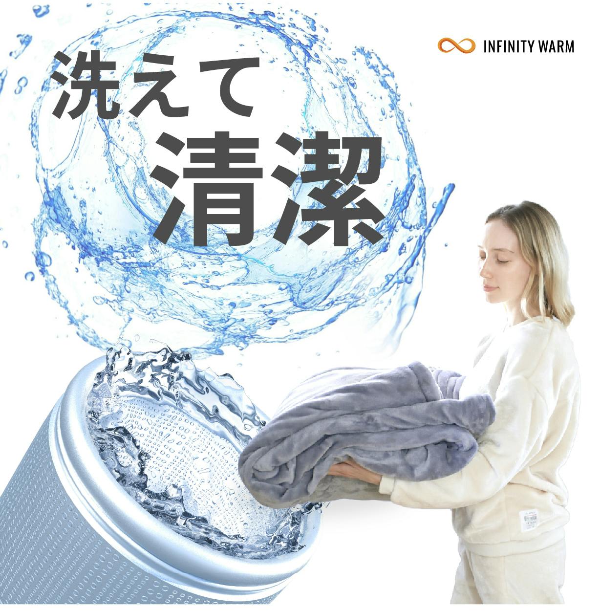 羽毛布団のお手入れは手間や費用がかかりますが、オールインワンで使える「INFINITY WARM」は、家庭用洗濯機で丸洗いができます。毎日使う布団だからこそ、家でこまめに洗えて清潔&経済的。