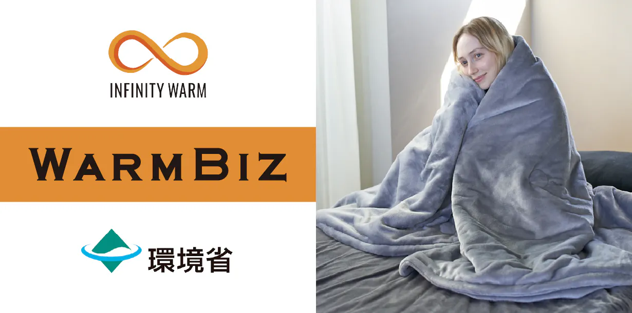 防寒アイテムを揃えることで、暖房などの電気代も節約出来ます。羽毛布団がいらないオールインワン掛け布団「INFINITY WARM」は、環境省の『WARM BIZ』(ウォームビズ)を推進しています。