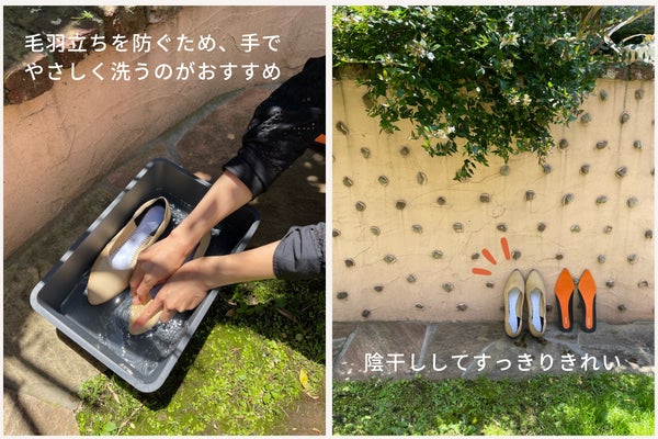 Kesouのパンプスは、水洗いでお手入れしていただけます。