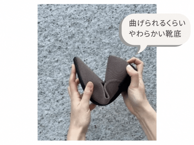 伸縮性の高いニット編みを採用しているので、靴が足のかたちに合わせてくれるのです。
