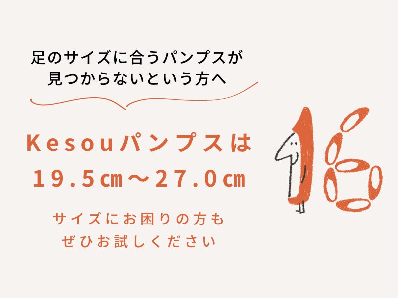 Kesouのパンプスは、どのデザインも19.5cm~27.0cmです。