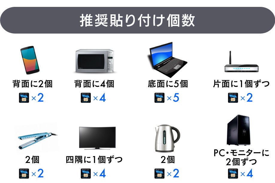 デスクトップパソコン、WiFiルーター、電子レンジ、テレビなどにも貼り付けて使えます。