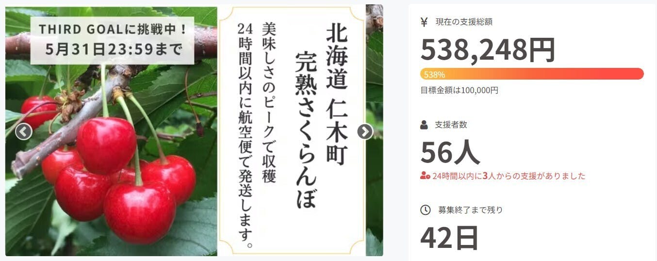 ご支援金につきましては、完熟さくらんぼを十分に収穫・選果するための人件費などの費用として、大切に使わせていただきます。