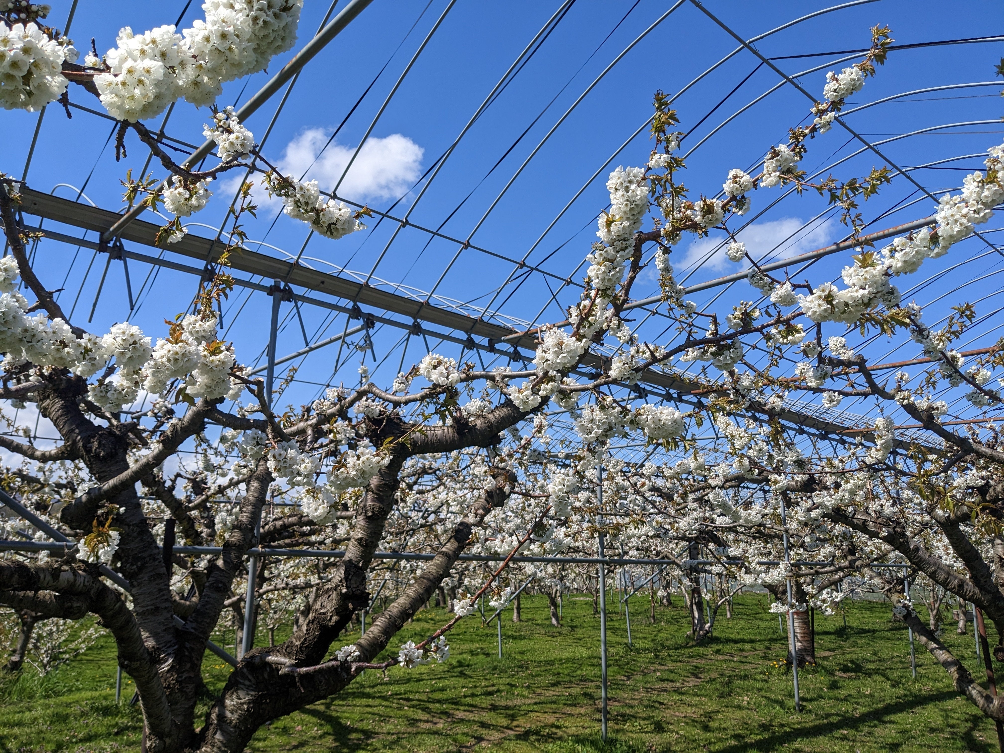 仁木町は徐々に春めいてきて、GW期間中はさくらんぼの花が満開となりました。