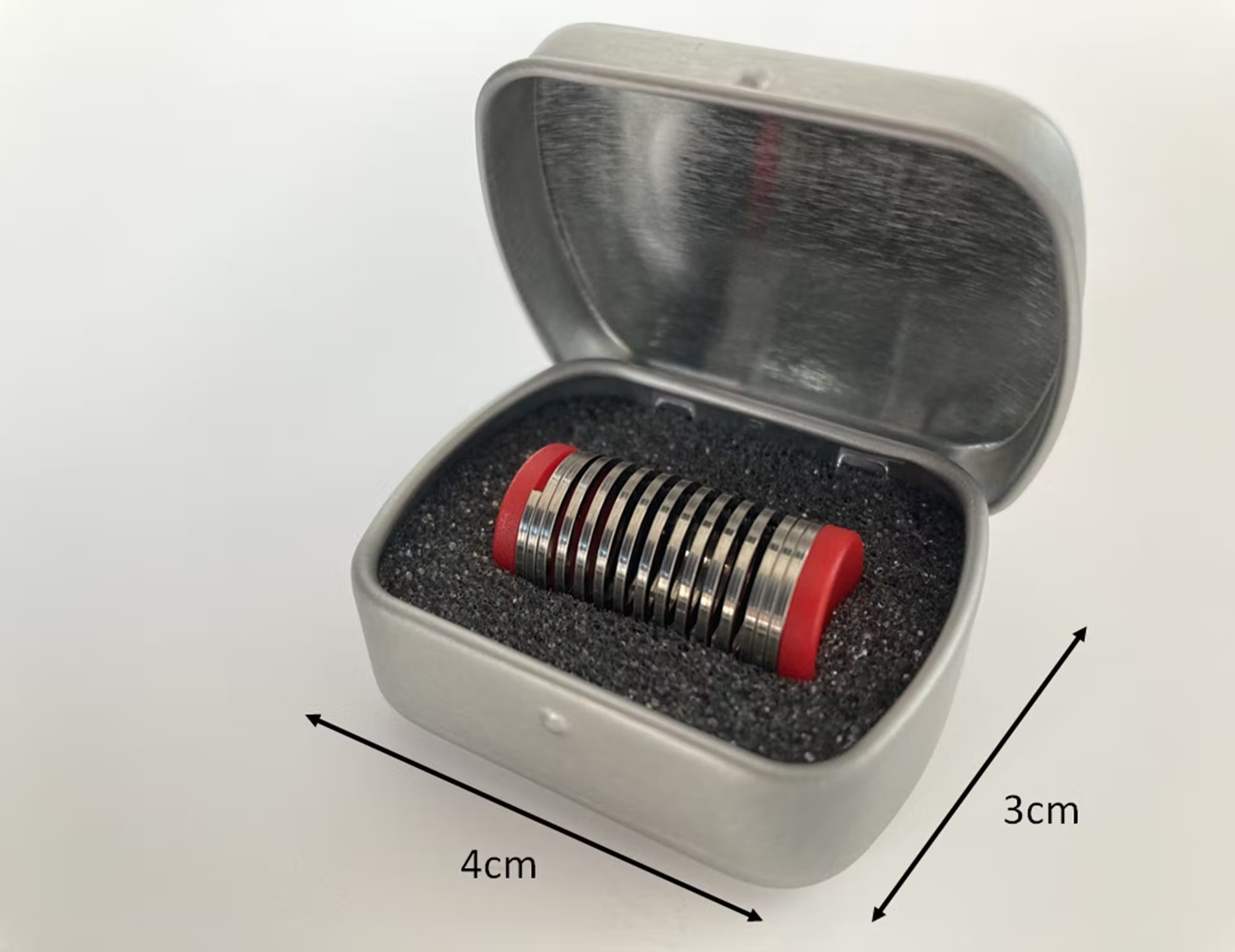 A 直径1.1cm、長さ2.2cm、重さ 3gです。