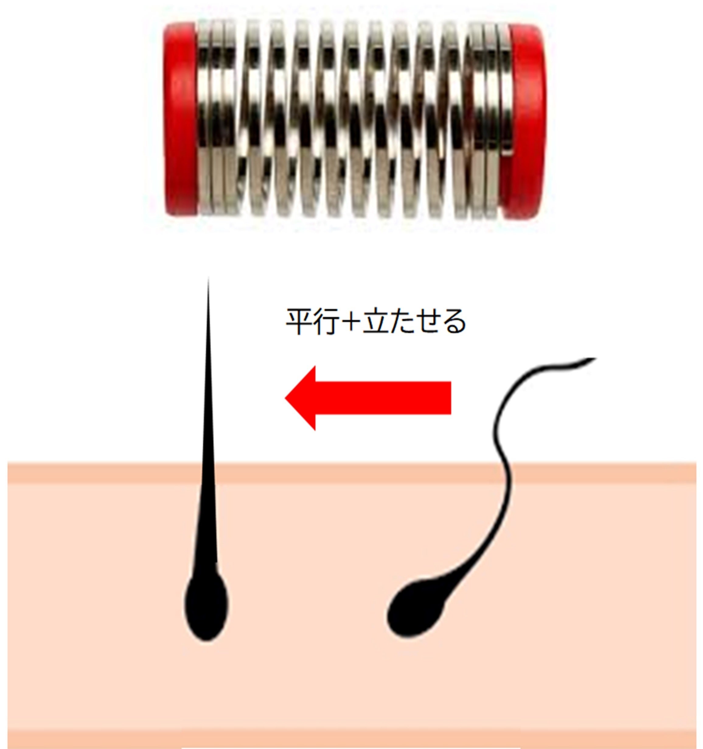 ・毛の流れに対して垂直ではなく平行にあてる(バネ隙間の向きに合わせる)