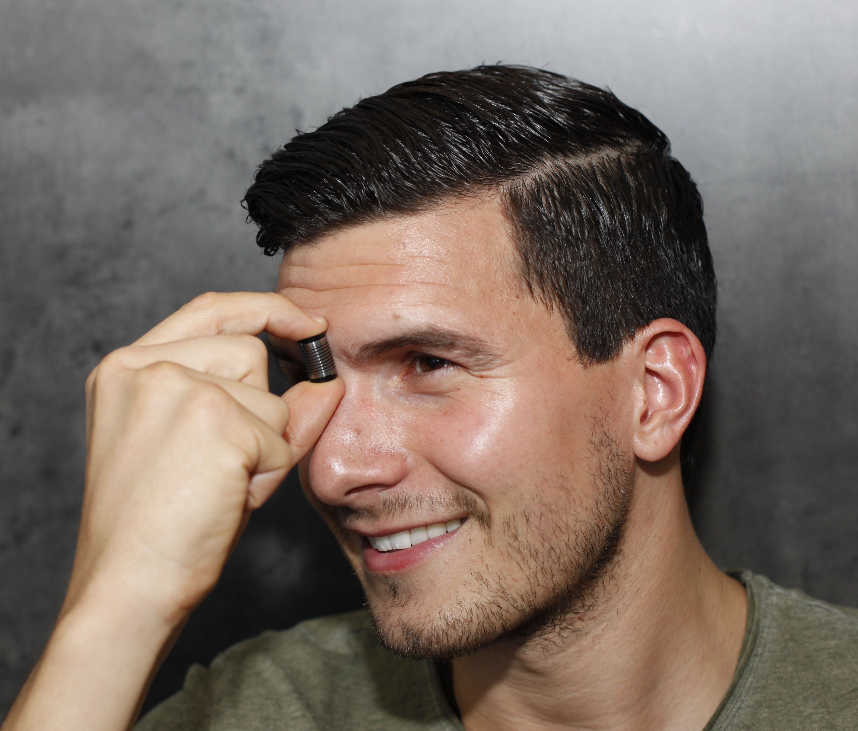 ①人差し指と親指でつまんで接地面にfacyyを当てて毛を掴みます。