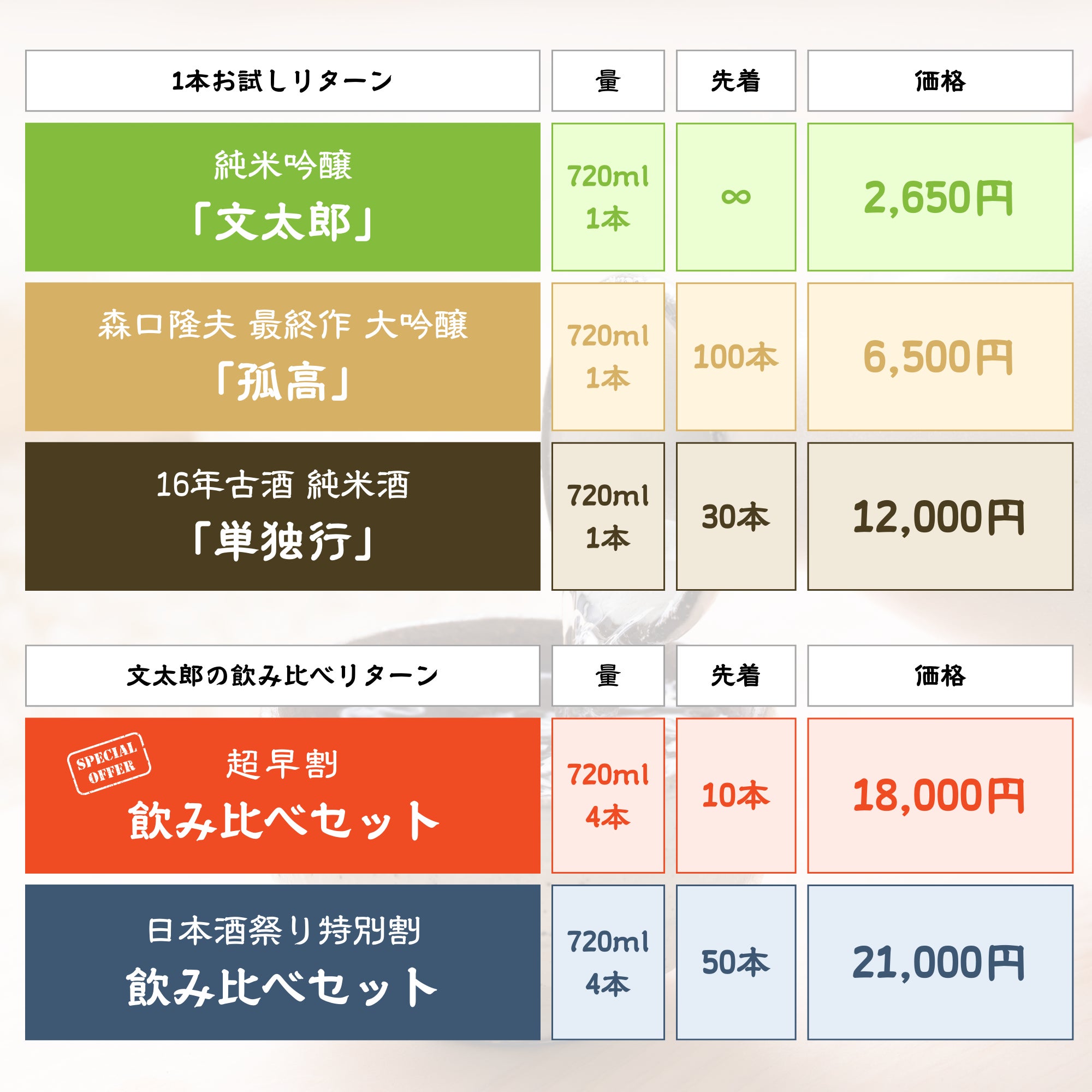 この古酒『文太郎』は【飲み比べセット限定】となりますのでご注意ください。