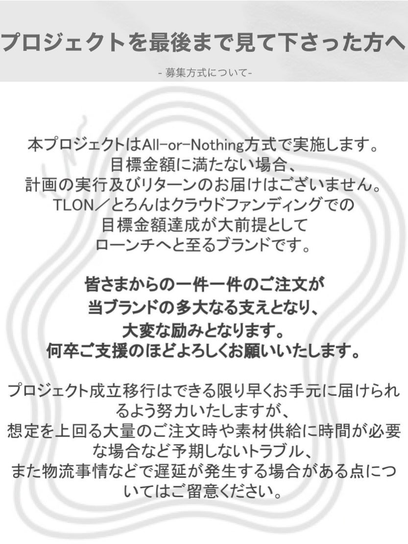 ◯ 支払い時期:当プロジェクトは「All-or-Nothing方式で実施します。