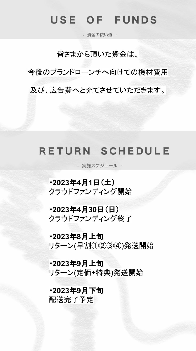 ※リターン価格とは別にCAMPFIREのシステム利用料が支援者様の負担となります。
