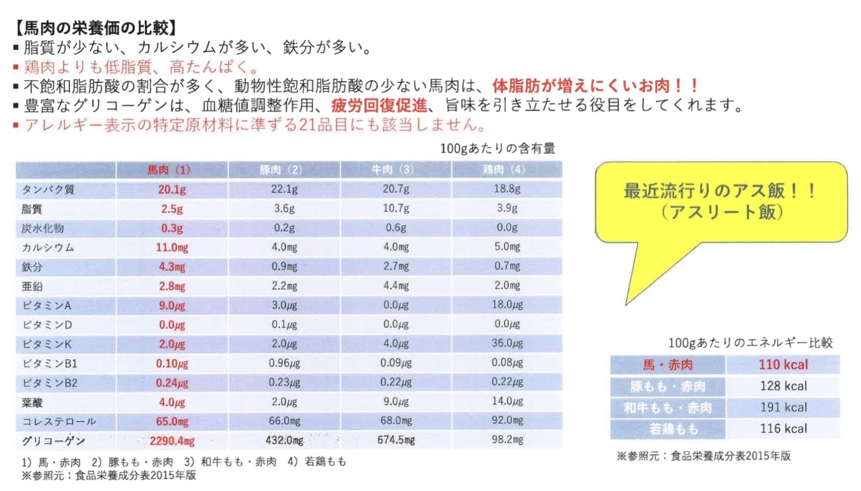 低脂肪、豊富なグリコーゲン