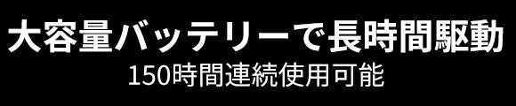 A:フル充電状態で最大150時間使用可能となります