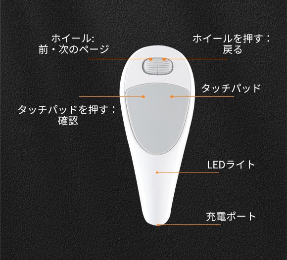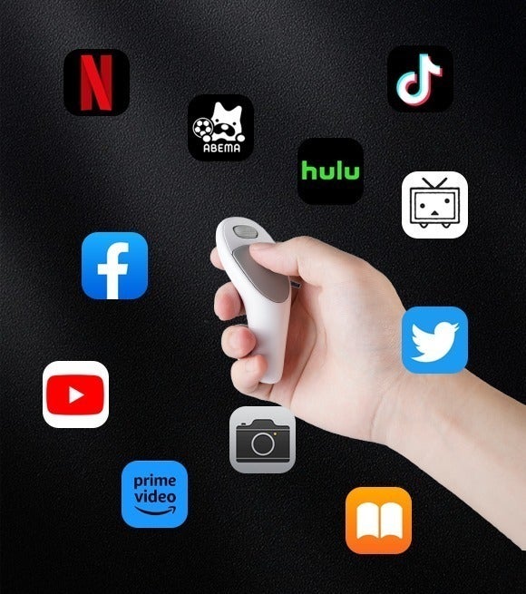 マウスとタッチパッドの機能を備えており、これらの機能により、写真撮影・音楽、動画視聴、Webブラウジング、TikTok/Instagramなどアプリのコントロール、電子書籍のページめくりなどが可能になります。遠隔操作は最大10m。