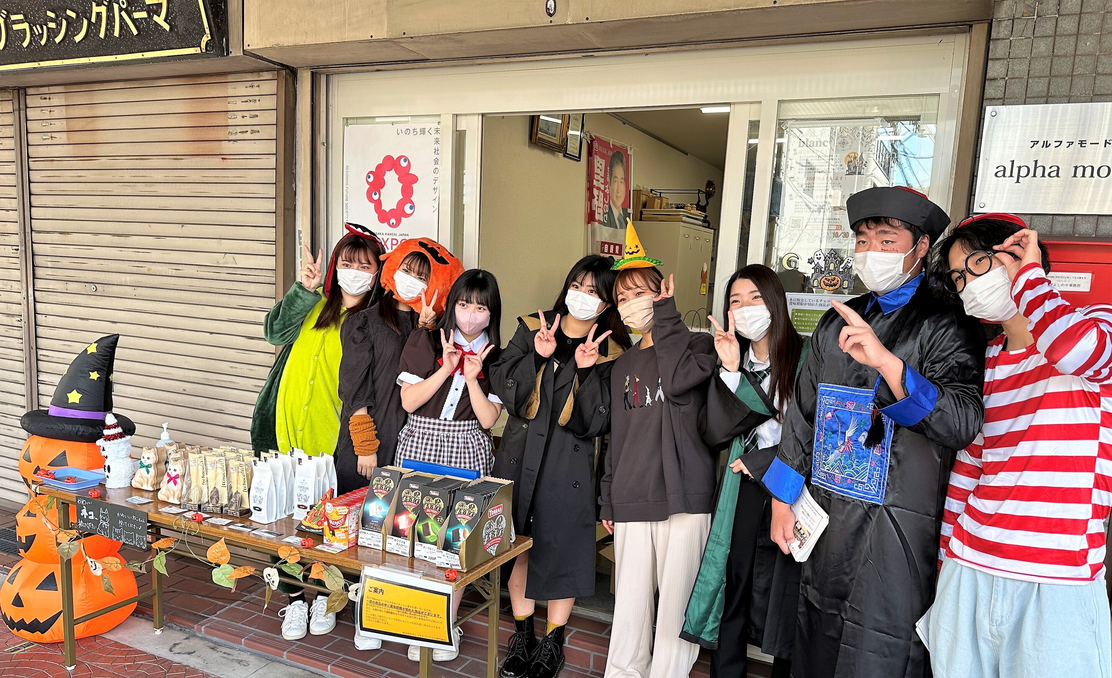 10月23日には淡路島で開催されたイベント「秋のふれあい青空市&洲本市農業祭」に出店しました。イベントでは、淡路島の人々の温かさと天気にも大変恵まれ、多くのチョコを売ることで活動をPRすることができた。同月30日には、地元の吹田市片山商店街で、ハロウィンイベントを行い、仮装をしながら子どもたちにチョコを振る舞って、地元の人たちと交流し、地元商店街の活性化に貢献できました。