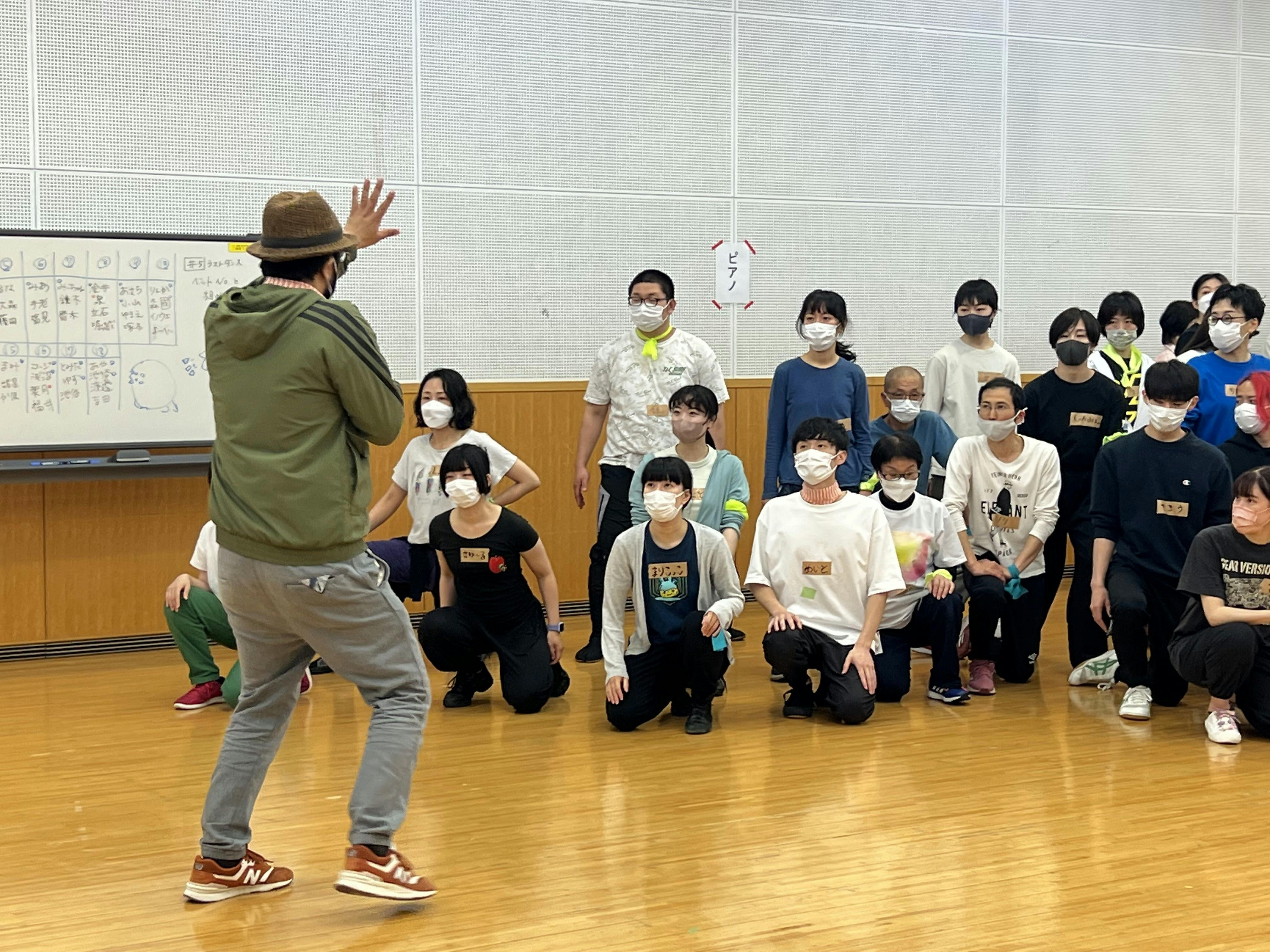 本稽古の初日は、全員でのダンスの練習。