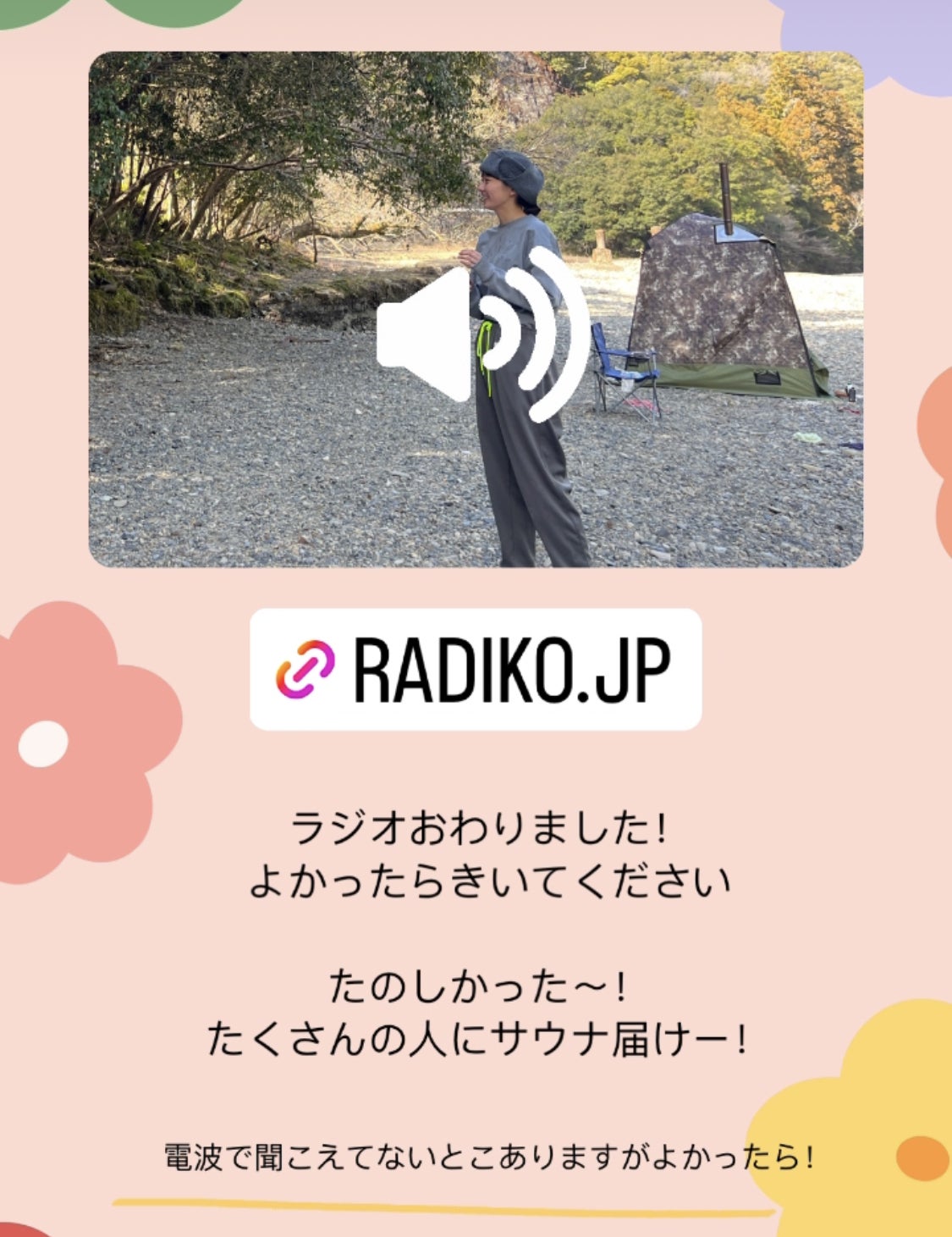 山奥で電話をつないでいたら途絶えてた瞬間がたくさんありましたが、たのしかったので、サウナと絵本とわかやまのこと伝えられたからよかった!