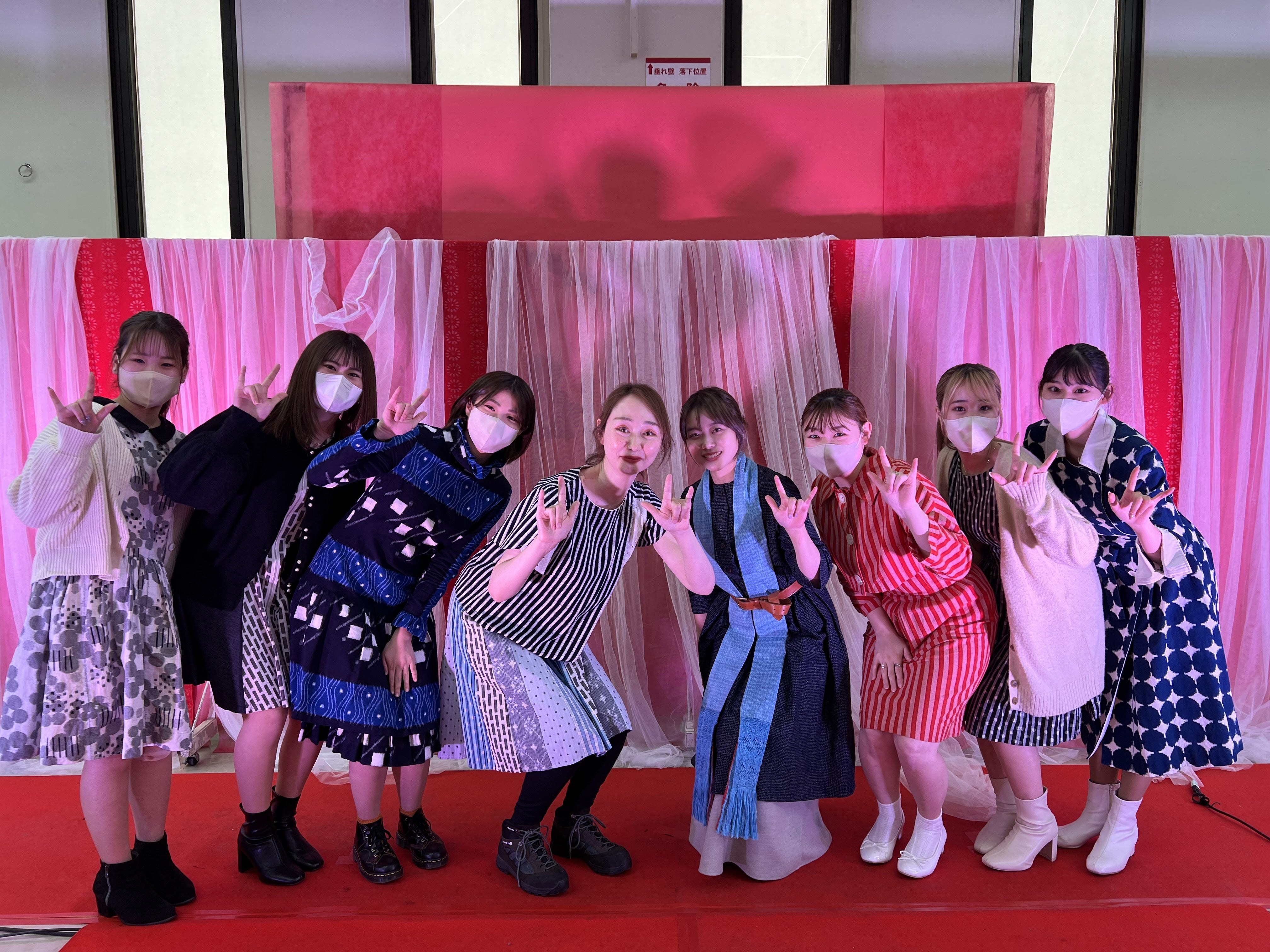 最終日のファッションショーの後には、久留米大学の前田先生のご提案で、久留米大学の絣キャストの皆様と、舞台上で絣体操を披露させていただきました。
