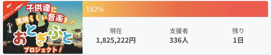 現時点(7日14:25)で1,825,222円、支援者数336人となっております。