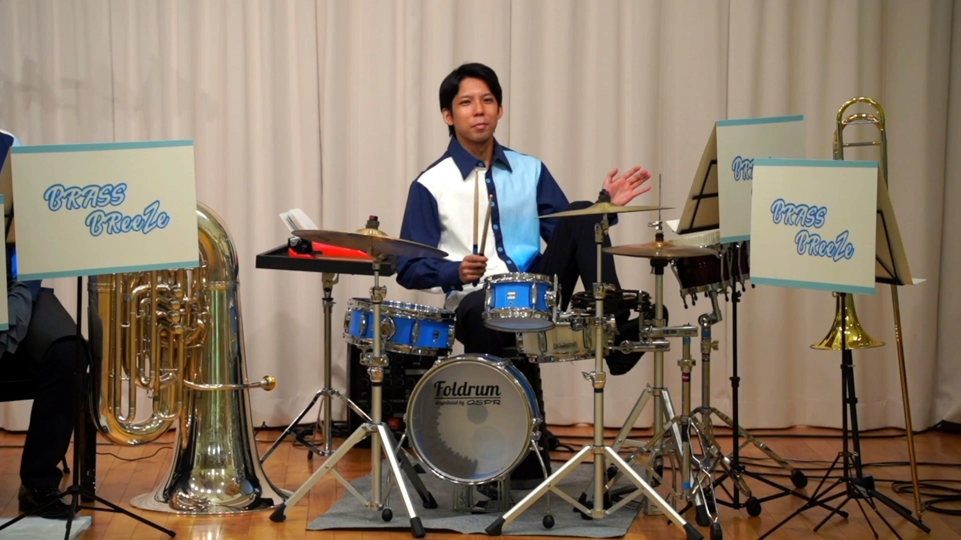 トランペット古土井さんがドラムの峯崎さんを紹介する時に