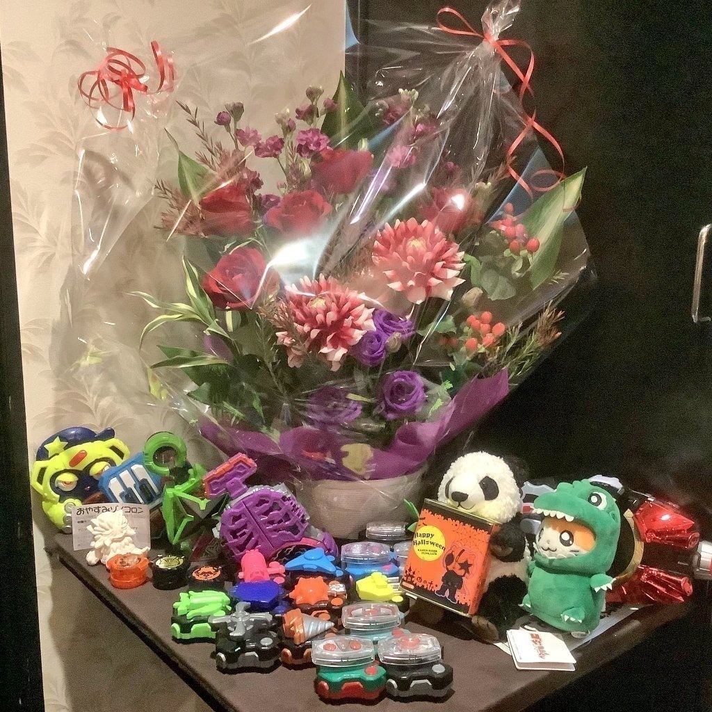 ↑開店1周年では、お客様に素敵なお花をいただきました!