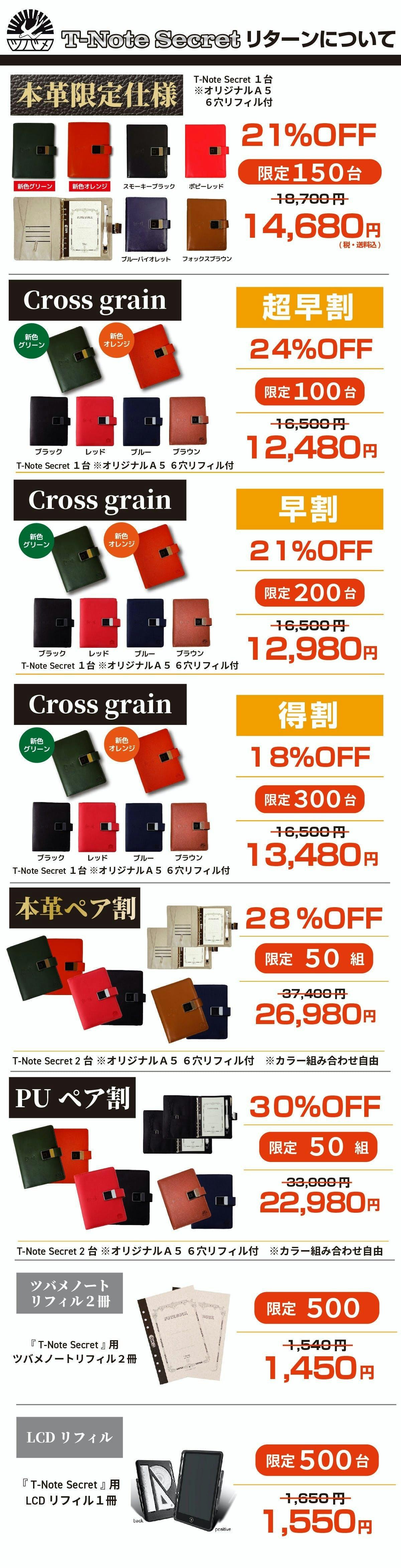 2024/01/26 21:00お世話になります。MKトレードです。■ライフハッカーで紹介されました!タブレットやスマホで手書きデータを管理できるようになりましたが、「やっぱり紙とペンで記録したい!」そんなワガママを叶えてくれるガジェット文具として『T-Note2』を紹介していただきました♪是非商品レビューを参考にご購入をご検討ください。掲載記事はコチラhttps://www.lifehacker.jp/article/machi-ya-tnote2-end-719281/画期的なタブレット!『T-Note2』おかげさまで200人達成!大変多くの方にご支援いただき心より感謝申し上げます。https://camp-fire.jp/projects/view/719281今回のプロジェクト『T-Note2』をご支援いただいたリピーター様に対して「先着50名様 オリジナルポケットメモ帳プレゼント」を開催中!※リピーター様、事前登録いただいた支援者様限定のキャンペーンです。 先着50名様まだご応募可能です!是非ご応募ください!---------------------------------------------------★応募方法★今回のプロジェクト『T-Note2』をご支援のうえ、「メッセージを送る」より下記を記載してご応募ください。【リピーター様】 ・過去にご支援くださった弊社プロジェクトの商品名 ・過去支援ID ・氏名【事前登録者様】 ・事前登録メアドまたはLINE名称 ・『T-Note2』の支援ID最後まで、どうぞよろしくお願いいたします。https://camp-fire.jp/projects/view/719281『T-Note2』プロジェクトスタッフ一同************************************************************追加購入などに便利な「MKTrade限定公開ショップ」もぜひご覧ください♪https://mktrade2.official.ec/ もっと見る