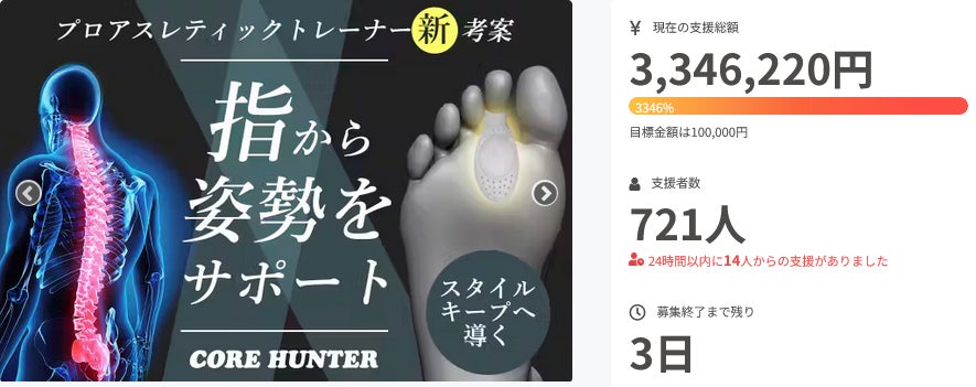 【コアハンター】プロジェクト、なんと達成率は3346%を突破しております!!