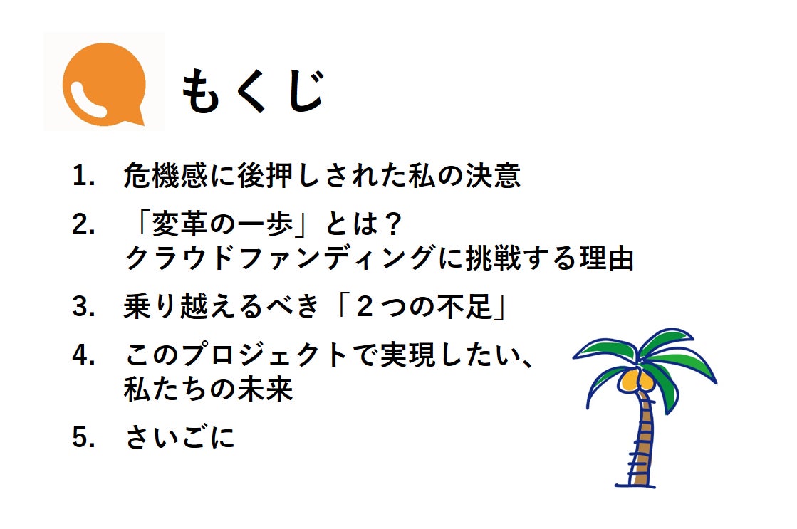 重責を担うことへの不安や迷いもありましたが…現状への「危機感」が私の背中を押しました。今こそ団体の先頭に立ち、アクセスの強みを最大化しながら、全力で組織課題を解決していかなければ。そのために、「変革の一歩」を勇気を出して踏み出そう。そう思い、このクラウドファンディングに挑戦することを決めました。