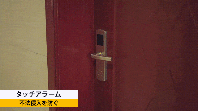 ドアノブに触れた時に生じる微かな振動でも感知して、アラーム音を鳴らします。